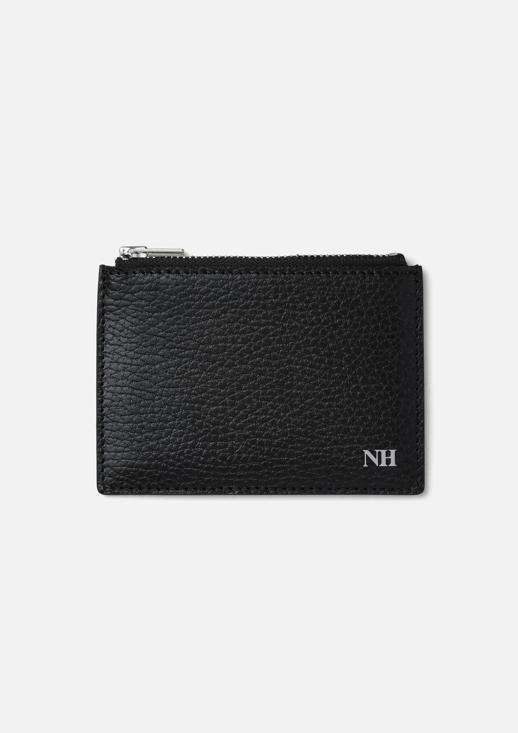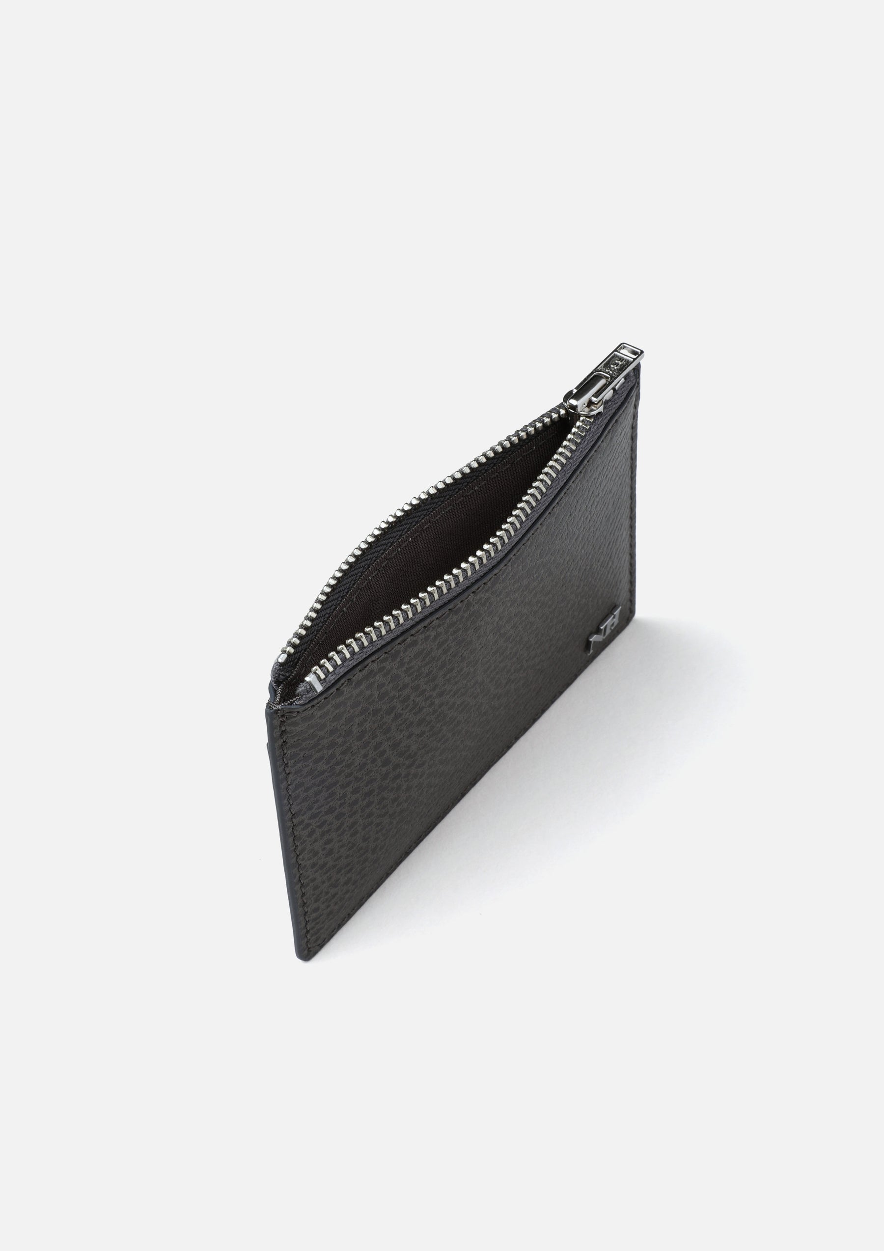 Leather card case made from durable vegetable-tanned cowhide with a rich texture. Made using oil leather certified by the Italian Vegetable-Tanned Leather Consortium, finished with a natural shrink process. Compact design featuring four card pockets and a coin wallet. Detailed with an original stainless steel logo plate and a foil-stamped logo.