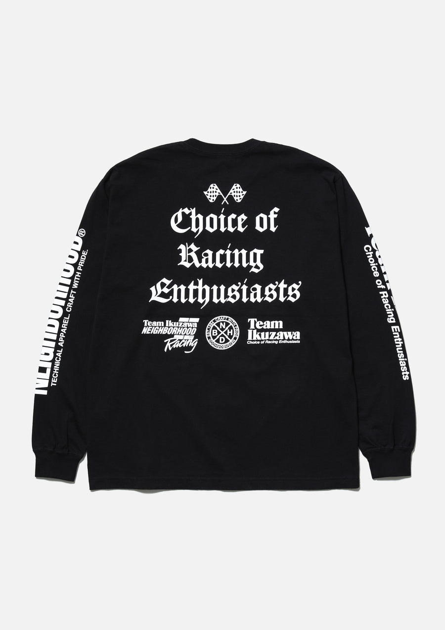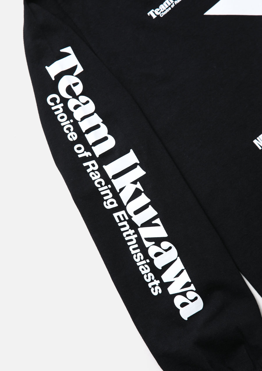 Long-sleeve T-shirt made from an original cotton jersey body. Features printed logos and graphics. Completed with a one-wash finish. Collaborative model with Team Ikuzawa.