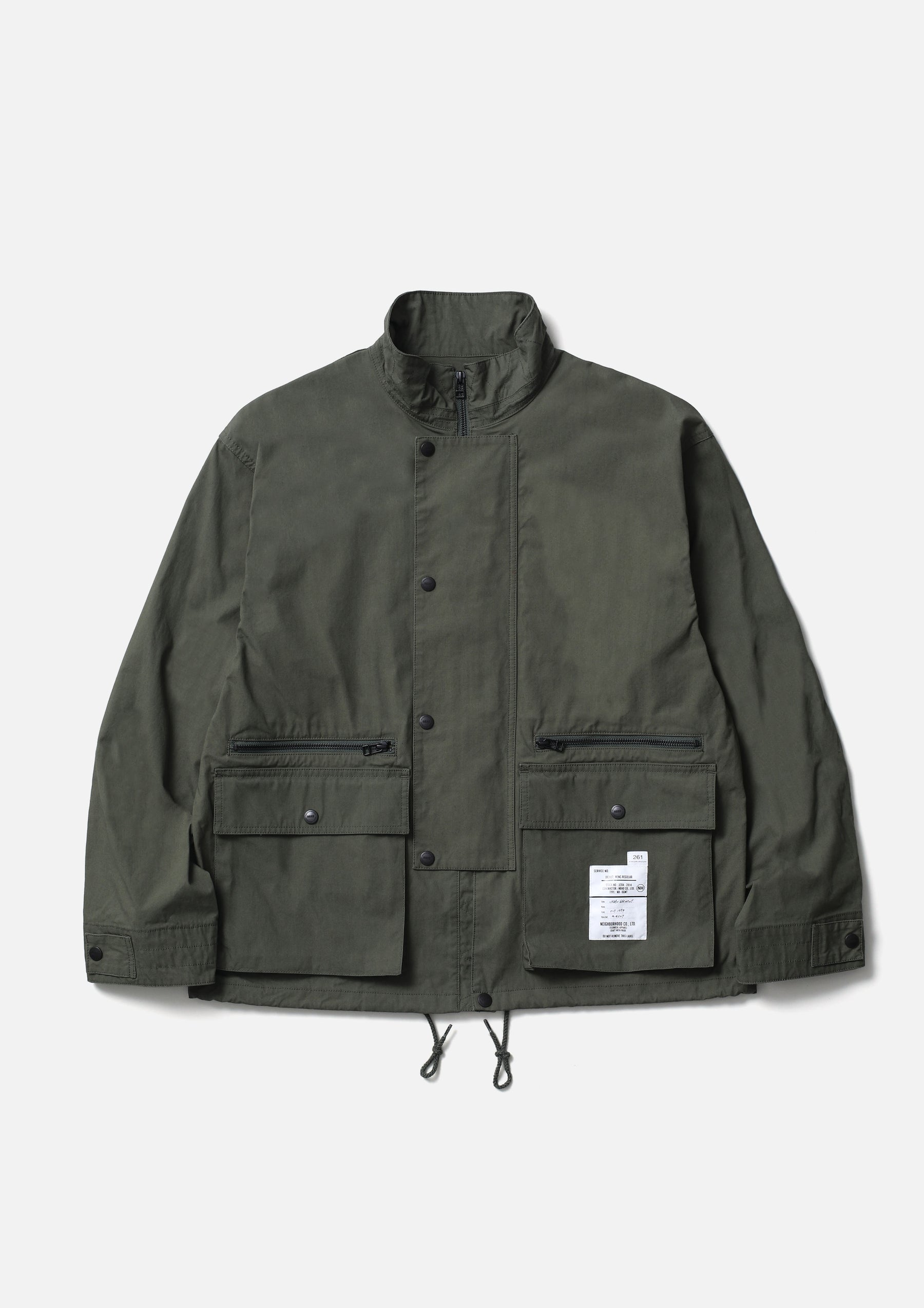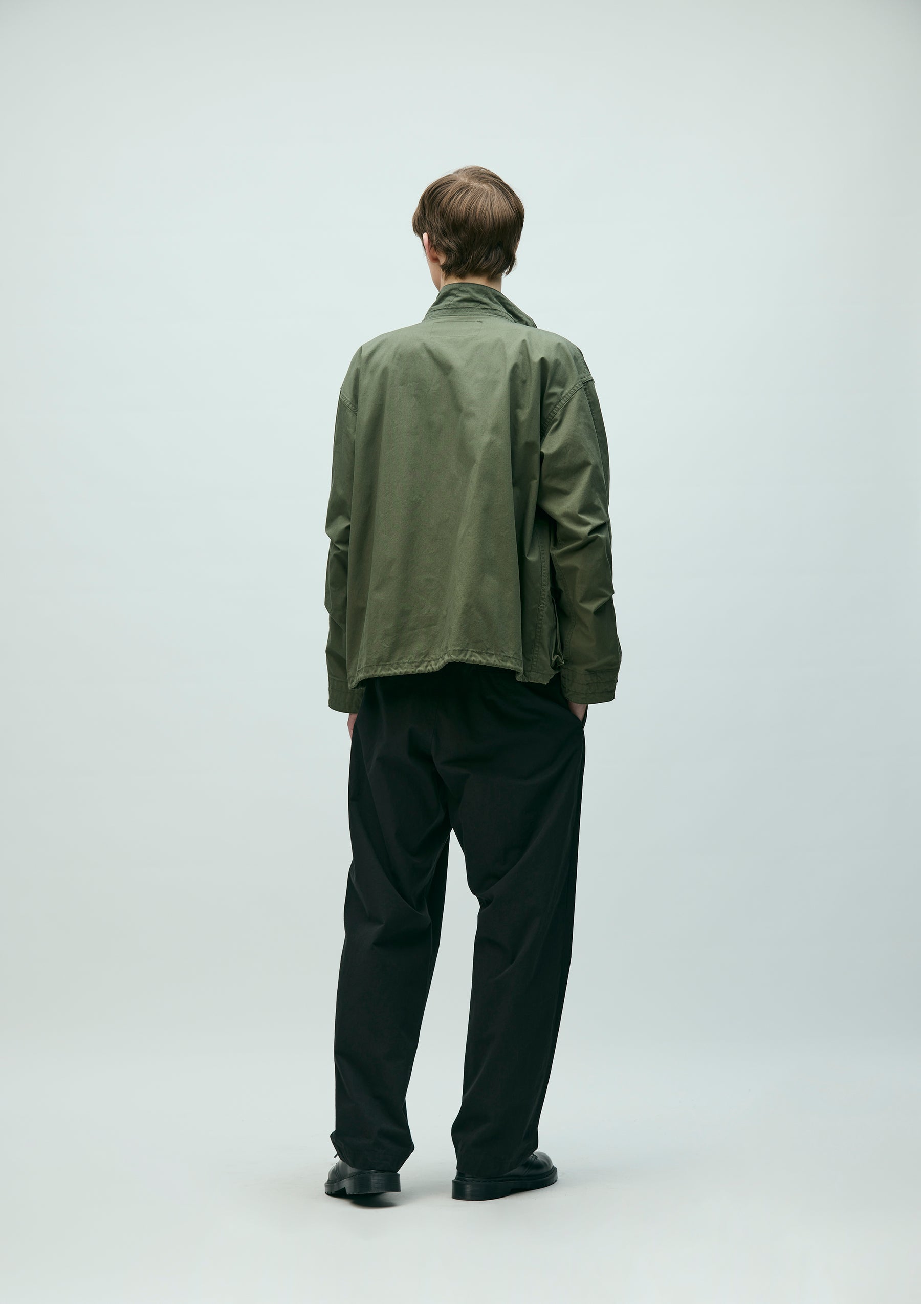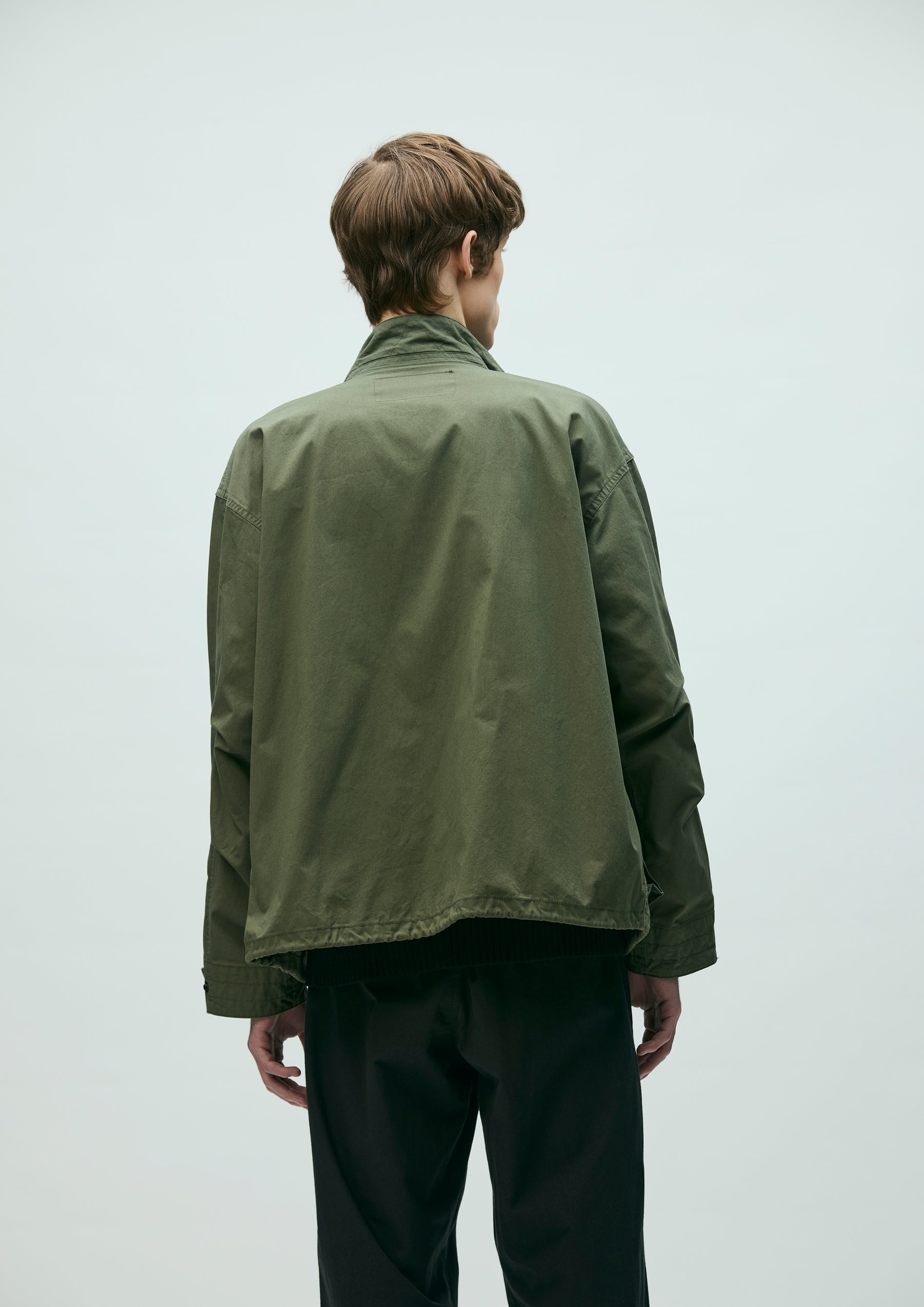 Stand Collar Field Jacket made from a cotton-nylon oxford fabric blended with CORDURA®, offering excellent durability and abrasion resistance, and finished with a water-repellent treatment. The front features a wide placket, gusseted pockets, and a zip pocket. An adjustable drawcord is built into the hem. The cuffs are finished with adjustable tabs. Original snap buttons are used. A brand tag is attached to the pocket, and a woven side label is placed on the left seam. Finished with a one-wash process.