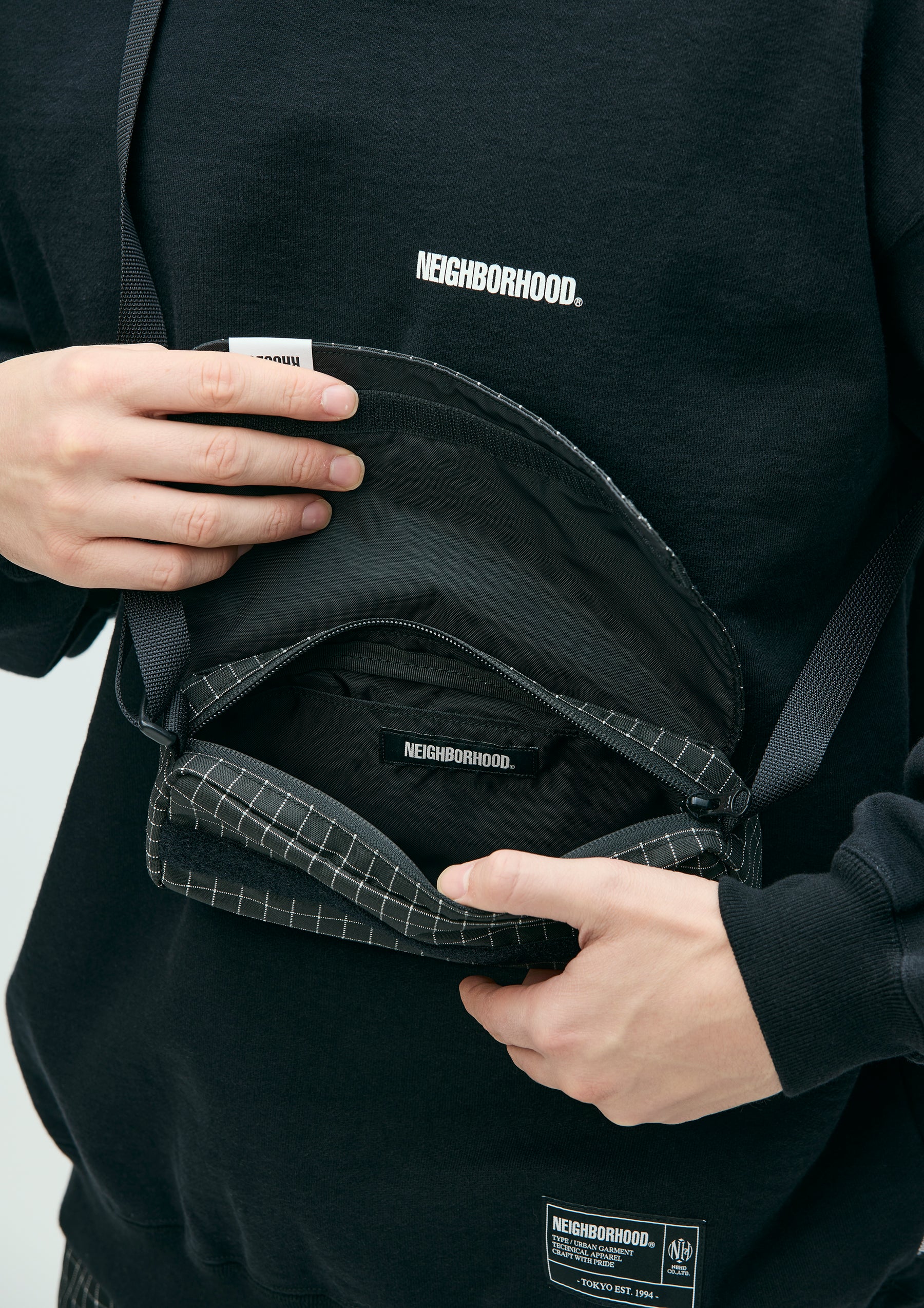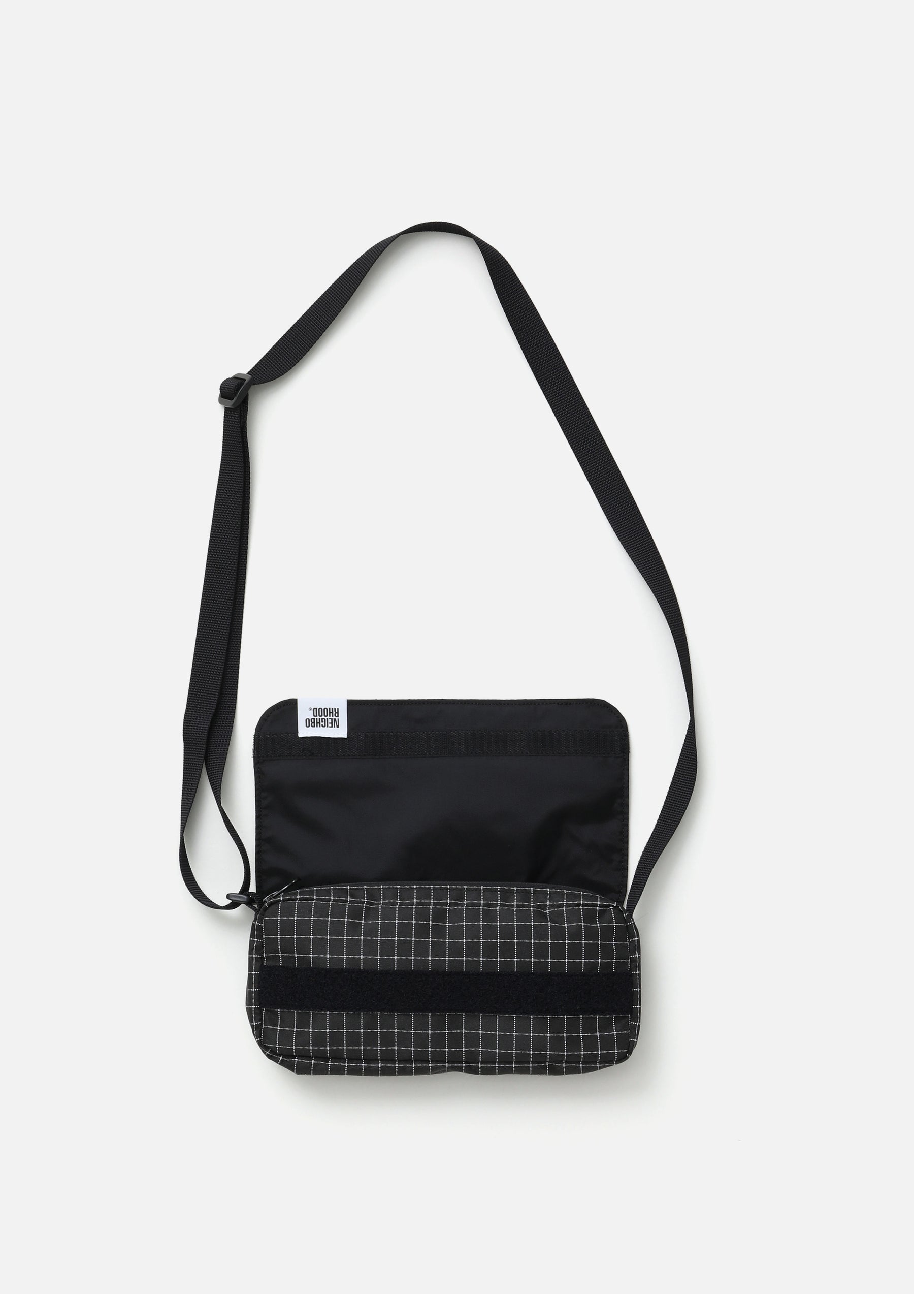 Mini shoulder bag made from original reflective ripstop material. The fabric incorporates reflective threads for high visibility, with a water-repellent treated surface and a polyurethane-coated reverse for durability, water resistance, and safety. Features a logo print and brand tag on the front. Designed with a versatile size and an adjustable shoulder strap that allows for both shoulder and crossbody wear.