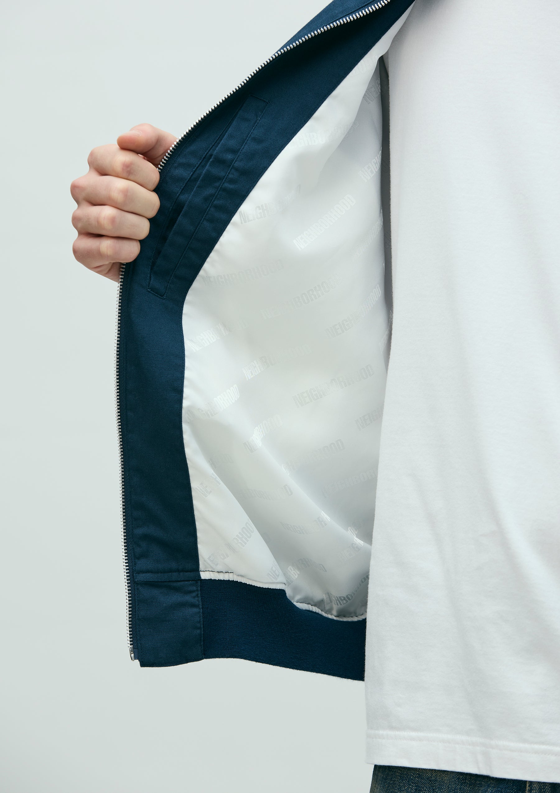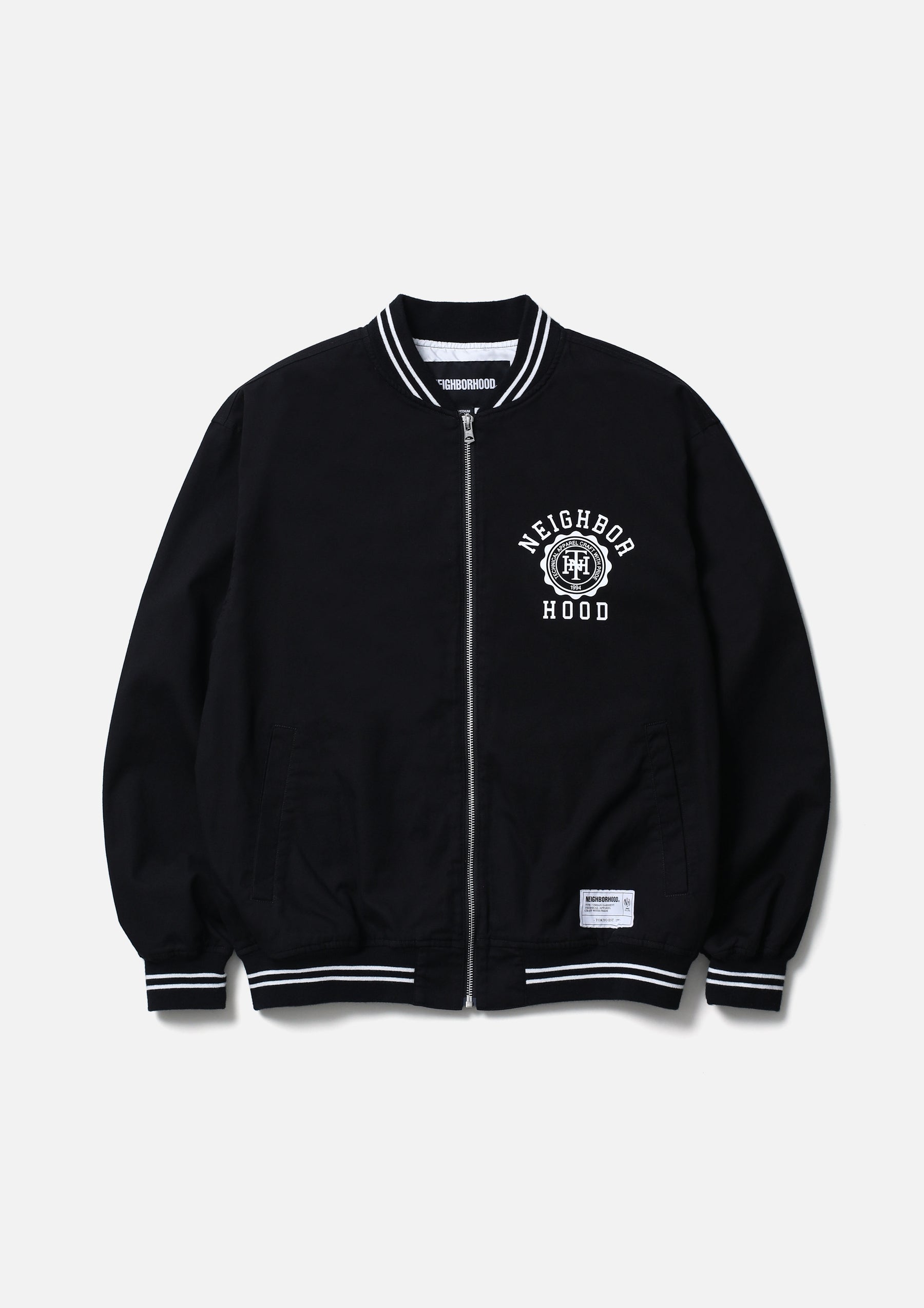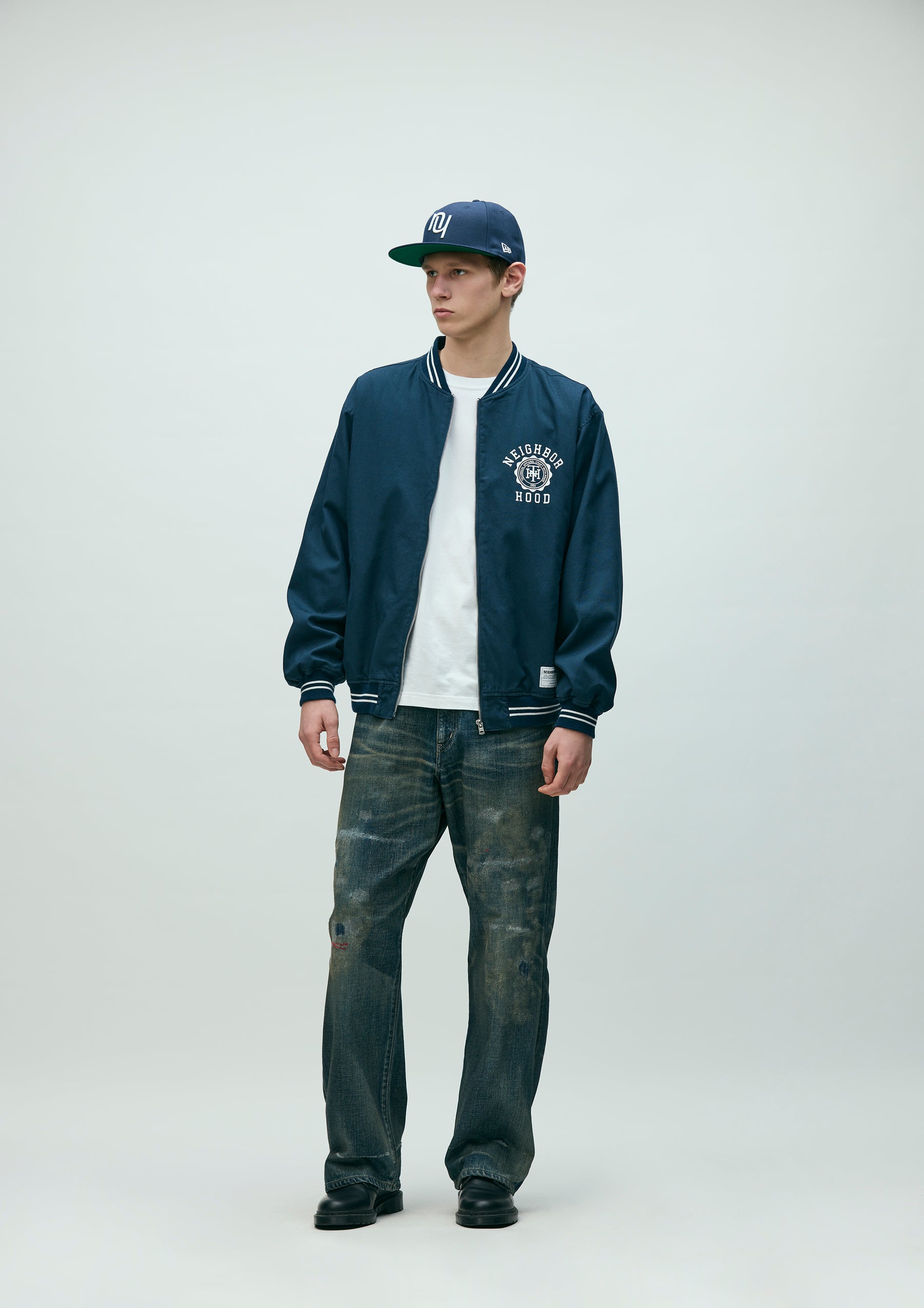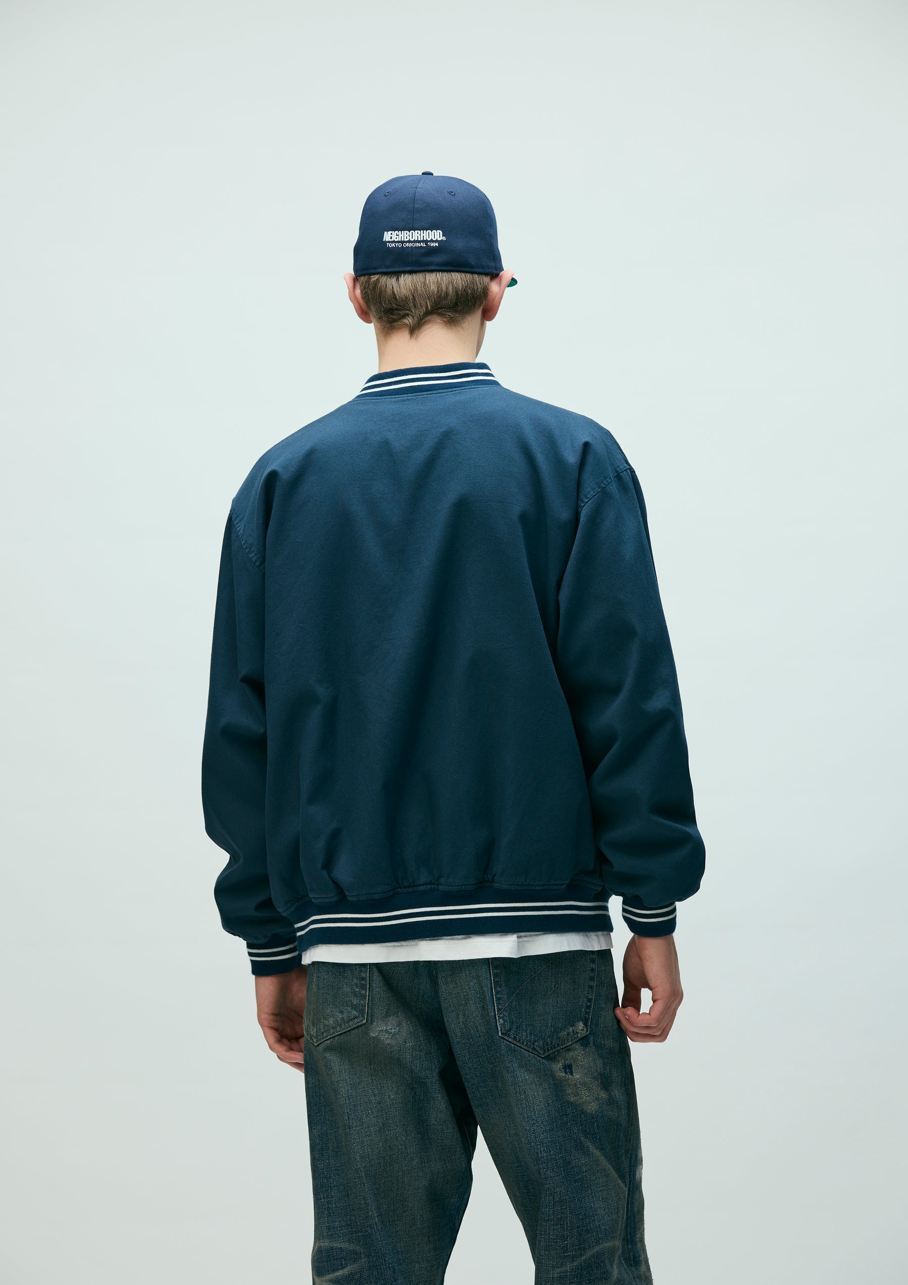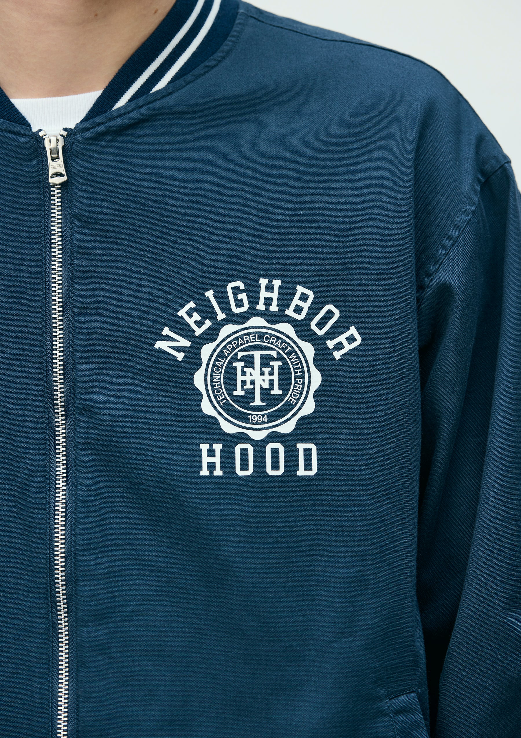 Award Jacket made from medium-weight oxford fabric. Features a printed logo on the left chest and original zipper pulls. A brand tag is placed at the left hem, and a woven side label is attached at the side seam. Finished with an original jacquard lining and a one-wash process.