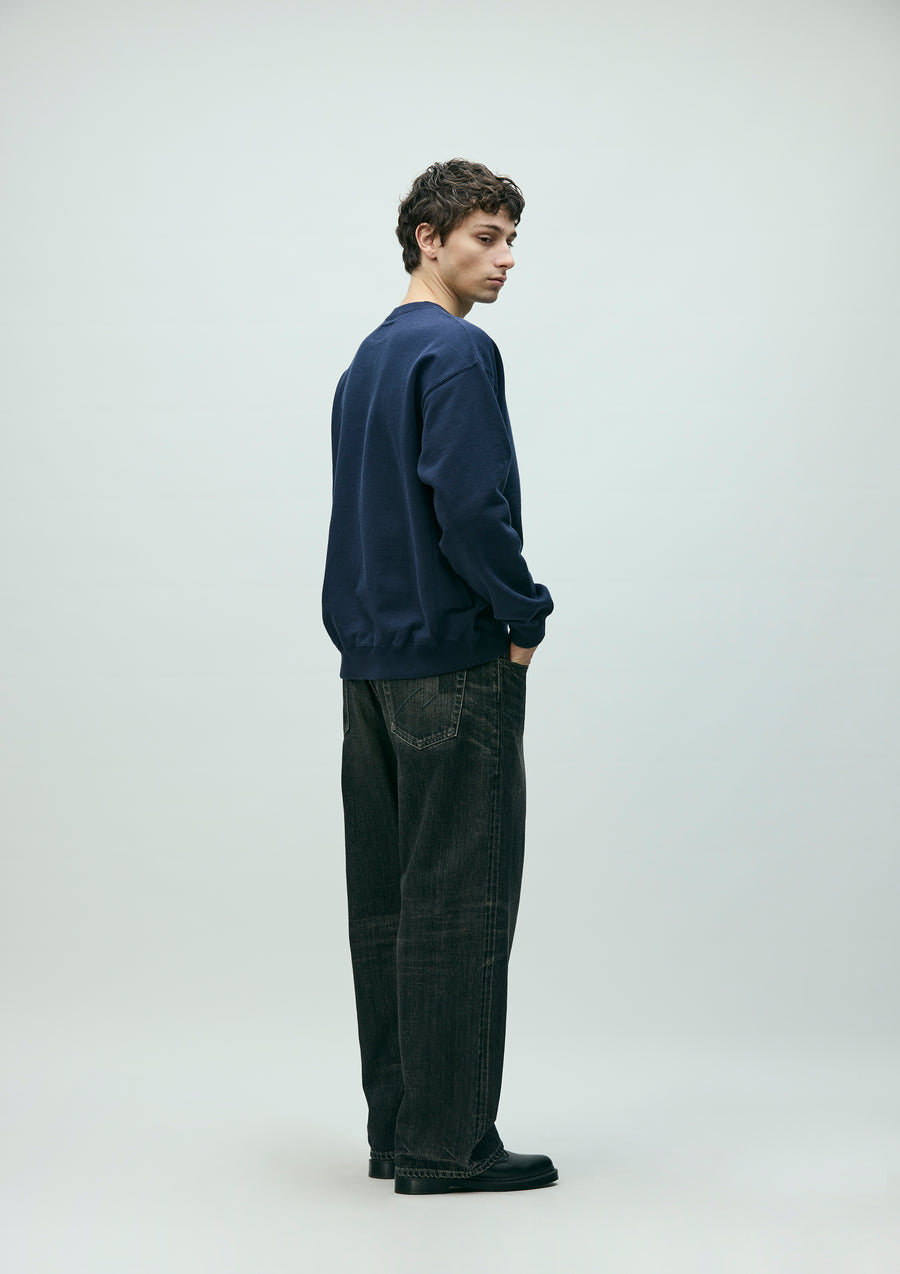 12 oz. original denim pants with a washed finish. All parts, from the selvedge denim fabric to the buttons and rivets, are all original. Details such as signature tape on the front zipper fly, "N" stitching on the hip pockets, and leather patches. Exclusive size label is attached to custom crafted item. New wide-slate silhouette with a fairly relaxed waist, hips, and hems.
